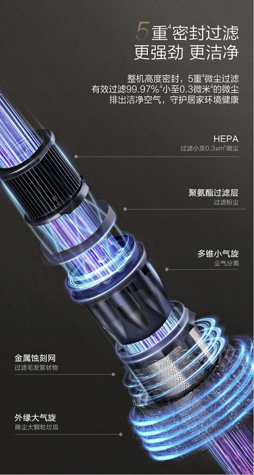 *巅峰:指对比飘万其他型号吸尘器,本次新品在吸尘、过滤、防缠绕等功能上有全新突破和大幅提升