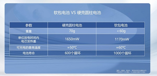 芙万Chorus还首次采用了此前主要在手机、iPad上才使用的软包电池,综合性能完胜市场主流的硬壳圆柱电池。在同等续航时间下,芙万Chorus软包电池重量轻15%,单位放电时间内电芯发热量少30%,可充电的最高温度上限能提升20%,而电池寿命则是圆柱电池的近1.7倍。