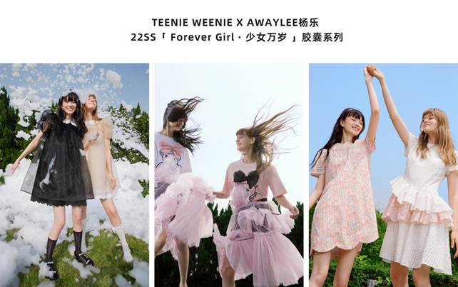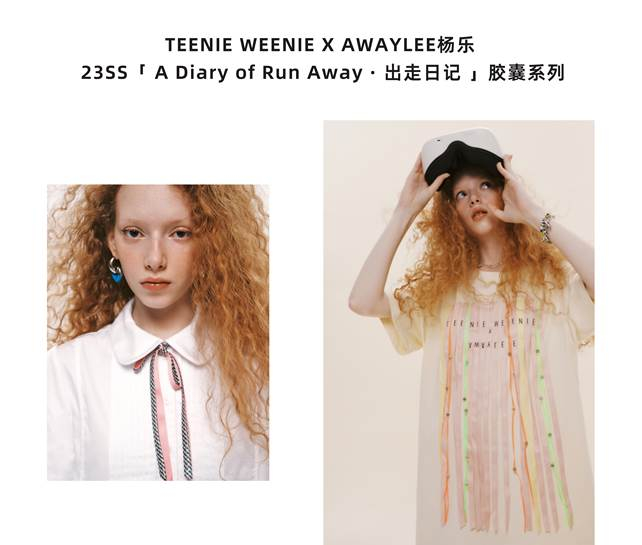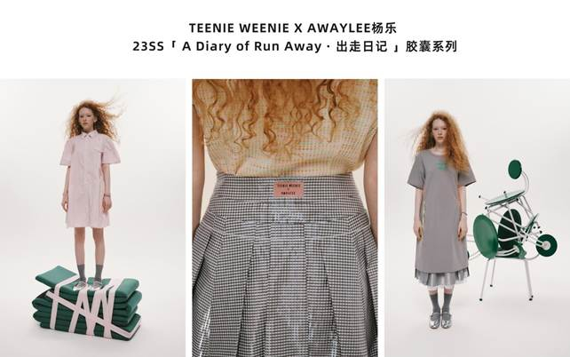 2023年5月,主理人兼设计师杨乐再度带着AWAYLEE的新品「A Dairy of Run Away · 出走日记」联名胶囊系列“杀”回少女时尚圈,这是“花开两朵,各表一枝”的国内知名“少女风”经典品牌AWAYLEE与TEENIE WEENIE的第二次联名合作,也是杨乐成为AWAYLEE二代主理人后自我革命式的勇敢“转型”,实现了品牌和她个人“双重破茧”式的成长。