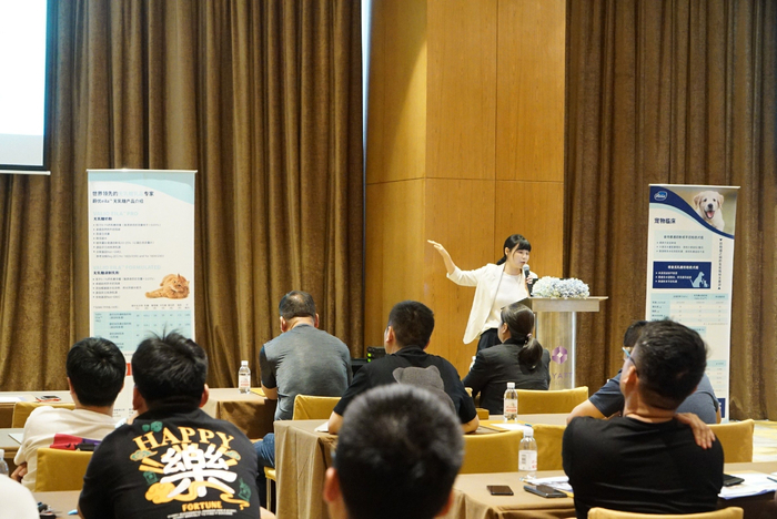 会议最后,蔚优特邀宠爱国际动物医院技术院长—— 崔明君兽医师为与会听众分享宠物无乳糖临床实验的研究成果。该实验以对比普通牛奶粉,羊奶粉以及无乳糖牛奶粉对宠物犬乳糖不耐受及营养健康方面的影响为目的,由蔚优牵头与南京农业大学的教授团队共同开展。此项实验从2021年开始,2022年更在JAAN(应用动物营养杂志)同步发表实验论文。