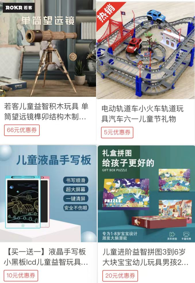 准——二三良作商城精准击中当代年轻父母精细化养娃的特点,特别在儿童节推出了“儿童益智拼装单筒望远镜”“儿童节特别款电动轨道玩具车”“安全液晶手写小黑板”、 “激发宝宝大脑发育的拼图礼盒”等好物。无论是亲子生活还是教育层面,都能够满足消费者的需求。