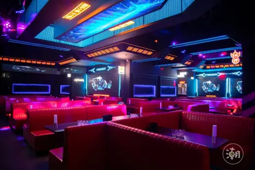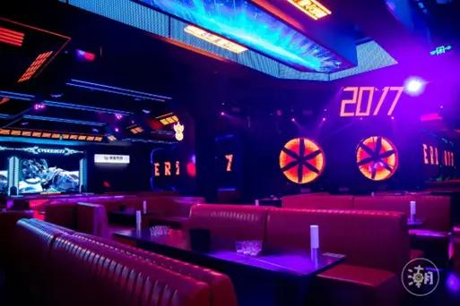 赛博2077酒吧是懂年轻人的!门口停放着2辆酷炫的摩托车,伴随着绚烂的灯光,已经感受到赛博朋克风带来的视觉享受了!