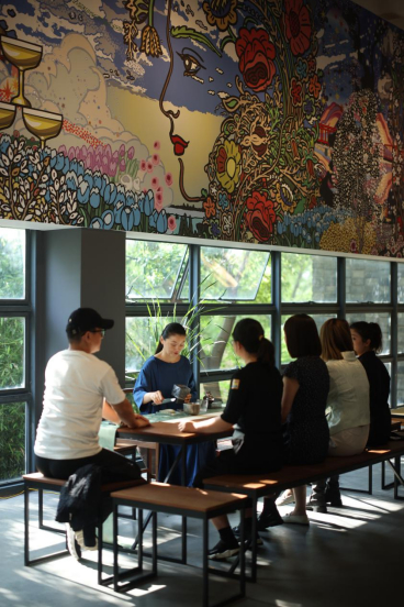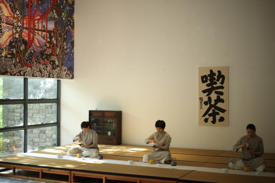 展览在美术馆二层开展“重逢之前 不必惊慌”主题茶会,茶会特邀资深茶师海娟(雲懿茶修学堂创始人)和王沙(止庵茶修空间主理人、止庵茶修学堂创始人)进行了茶展演。