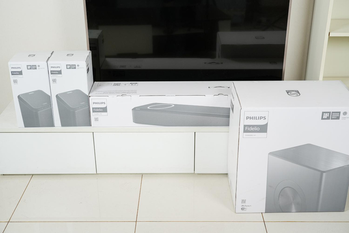 飞利浦Fidelio One给我的第一印象其实和同类产品并没什么本质上的不同,毕竟都是一个回音壁、加一个“低音炮”,再加两个环绕音箱。