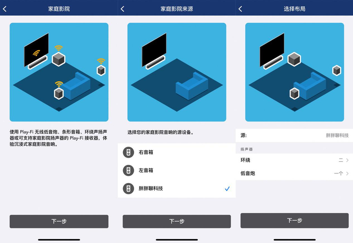 首先,我们进入设置页面,选择“家庭影院”分组,就可以开始家庭影院的设置配对工作了。