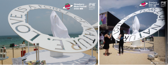 除音乐现场带来的视听盛宴外,在5.20这样充满爱意的日子里,以女性健康愉悦为核心的萨福也在舞台旁边打造了概念艺术展区,凭借极具审美的雕塑、互动吸引众多乐迷前来打卡拍照。萨福的展位以“爱与生俱来”为核心,将“圆”作为展现形式呈现给在场的乐迷及粉丝们。