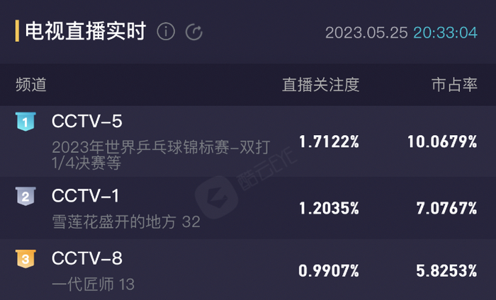 5月25日晚,绿源液冷电动车强势登陆CCTV-5体育频道,在全民关注的“2023年德班世乒赛”1/4决赛期间火爆刷屏,为国乒队德班世乒赛实力应援。据酷云EYE权威数据显示,当期直播关注度峰值达到1.7122%,位列黄金时段全部频道直播关注度NO.1,热度空前。