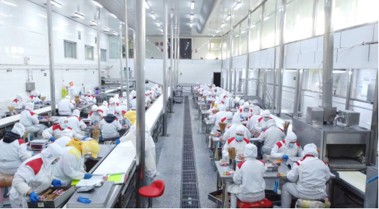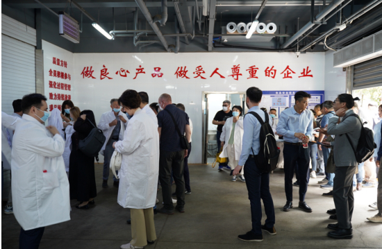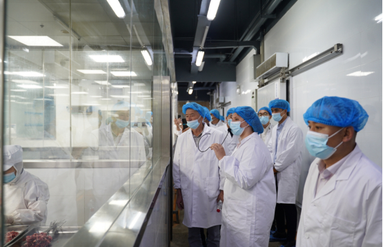 哈萨克斯坦企业代表团抵达叁宝烤肉实业集团,参观考察了叁宝烤肉中央厨房,由中央厨房中心负责人带领代表团参观并讲解生产全过程及厂区运营管理标准。