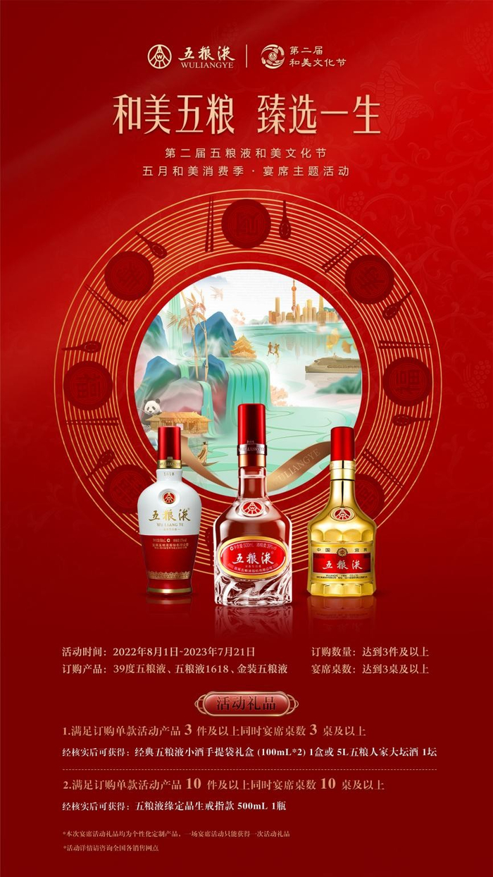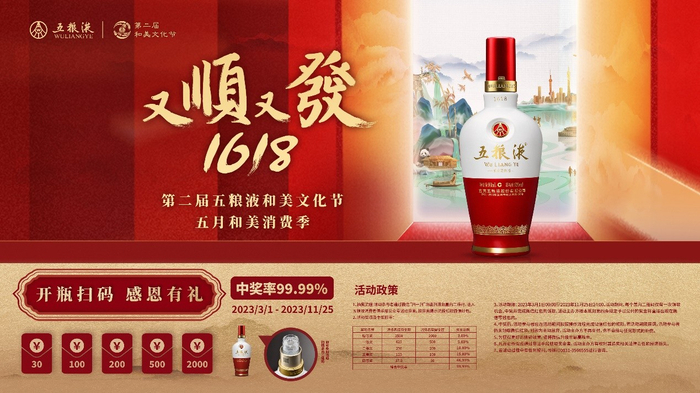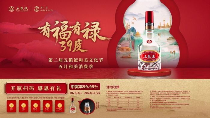 消费者除了能参与线上互动赢取丰厚礼品,还可以参与五粮液“五月和美消费季”全渠道消费活动,享受购酒回馈。