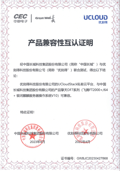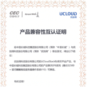 信创生态再突破:UCloud优刻得私有云与中国长城擎天DF7、EF8系列服务器完成产品兼容互认证