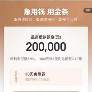 京东金条是京东金融APP为信用良好的用户量身定制的现金借贷服务,拥有无抵押、在线贷、灵活借、随时还等特点。金条借款额度最高可达20万,资金一般会在借款申请提交后5分钟内到账。年化利率6.9%-24%,日利率低至0.019%。利息自贷款成功发放之日开始计算,支持按月和按日计息,按日计息提前还款不收剩余利息,用户可根据资金需求合理进行借款规划。
