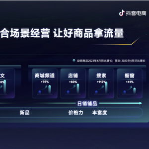 近一年,抖音电商GMV增幅超80%;其中,与货架电商核心场景有关的商城GMV同比增长277%、电商搜索GMV同比增长159%。