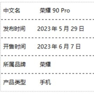 荣耀90 Pro是荣耀于2023年5月29日发布的手机,首发荣耀2亿像素写真相机,拥有零风险调光护眼屏、5000mAh轻薄长续航、高能量密度超大容量电池、90W 超级快充、荣耀MagicOS 7.1系统等优势。