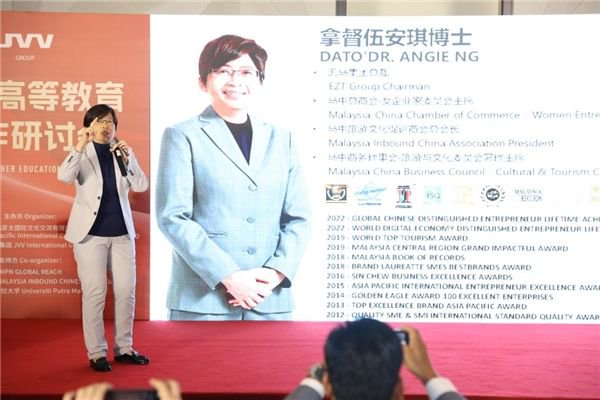 最后,久久国际集团总裁Dato Wira JOJO王琇瑛女士发表了致辞,向与会者介绍了该集团的土地开发业务。提到久久国际集团与中马教育合作的潜力和机会,久久集团将积极寻找与教育领域相关的土地项目,为中马两国的教育交流提供支持和便利条件。