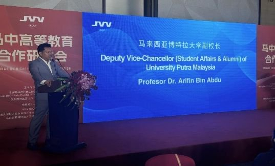 马来西亚博特拉大学副校长Arifin Abdu教授向与会者介绍了博特拉大学的情况,并表达了对中国发展特色课程计划的支持。同时宣布了博特拉大学硕士课程的0.5+1项目。