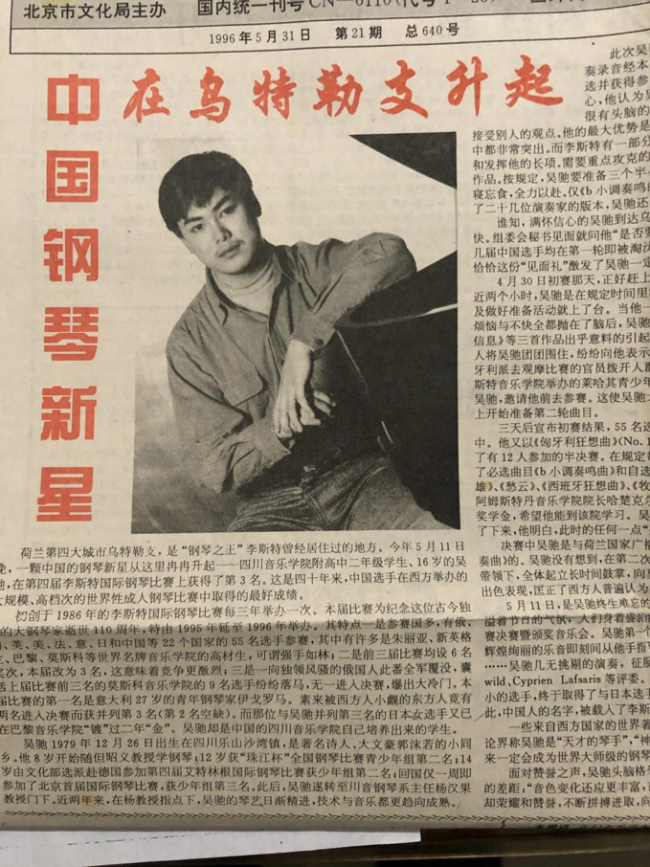 1994到1996年之间,吴驰在几个重要的国际钢琴比赛上获奖,国内名声鹊起。他比他同时期的几位钢琴新秀更早成名。难得的是,他没有借比赛成绩一时炒作自己,而是选择到国外潜心学习,之后就没怎么听说他,直到近年看到他再次活跃于舞台。