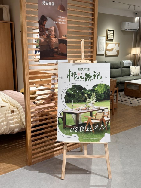 在线下新零售门店,源氏木语利用桃花坞IP产生的高热话题性,策划“质享桃花源”主题线下活动,来承接线上活动的热度。源氏木语将在指定线下门店布置桃花坞氛围物料,并且可以亲身体验桃花坞同款家具。