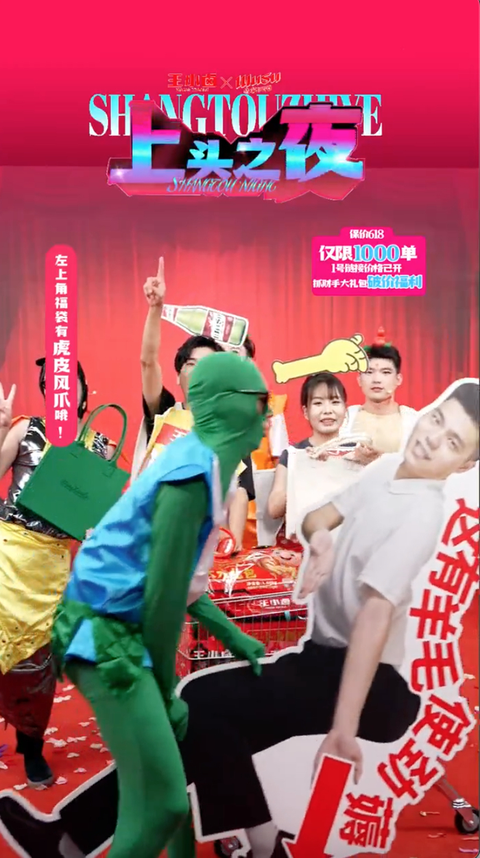 你听过葫芦兄弟说rap吗?你想参加五香味香妃的结婚典礼吗?你见过喀纳斯湖水怪说唱带货吗?本次618年中大促期间,好吃到上头的王小卤和好喝到上头的乌苏啤酒,进行了一次联名合作,在抖音打造了一场强趣味、大脑洞、无厘头的“上头之夜”直播。