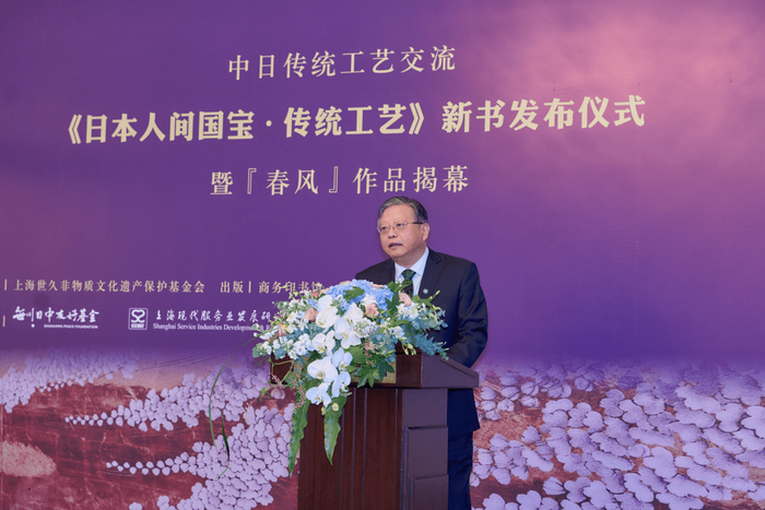 6月21日下午,“中日传统工艺交流暨《日本人间国宝·传统工艺》新书发布仪式”在上海花园饭店举办。中国社会科学院荣誉学部委员、国家非物质文化遗产保护专家委员会副主任委员刘魁立先生,上海市人大常委会原副主任、上海现代服务业联合会会长郑惠强先生,中国文化和旅游部非物质文化遗产司原巡视员、国家非遗展示保护基地专家委员会主任马盛德先生,商务印书馆党委书记、执行董事顾青先生,日本笹川平和财团常务理事安达一先生等嘉宾代表致辞;上海市文化和旅游局非物质文化遗产处处长陈平先生莅临指导;主办方上海世久非物质文化遗产保护基金会理事长陈学荣先生作主持辞。