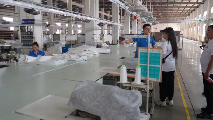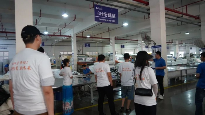 在工厂车间主任的详细讲解下了解到从弹簧、乳胶、海绵、面料,一步步到成为产品的全过程,大家更深入的了解到一款床垫的制作过程,收获满满。