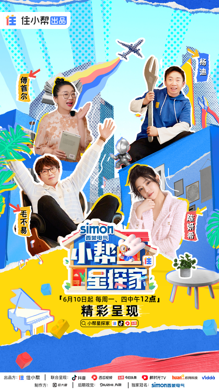 6月28日,由住小帮出品,Simon西蒙电气独家冠名的明星居家社交微综艺《小帮星探家》收官,相关合辑播放量突破2亿!节目聚焦明星探家、居住痛点、家居改造三大视角。主持人杨迪与毛不易、傅首尔、陈妍希携手开启了一场神奇的家居改造之旅,揭秘不同生活场景下的明星生活日常。杨迪为毛不易打造“租房党”的梦中客厅、为傅首尔改造“氛围控”最爱的独处茶室、为陈妍希实现“有娃家庭”显大实用的亲子互动客厅,为观众送去了意料之外的生活惊喜!