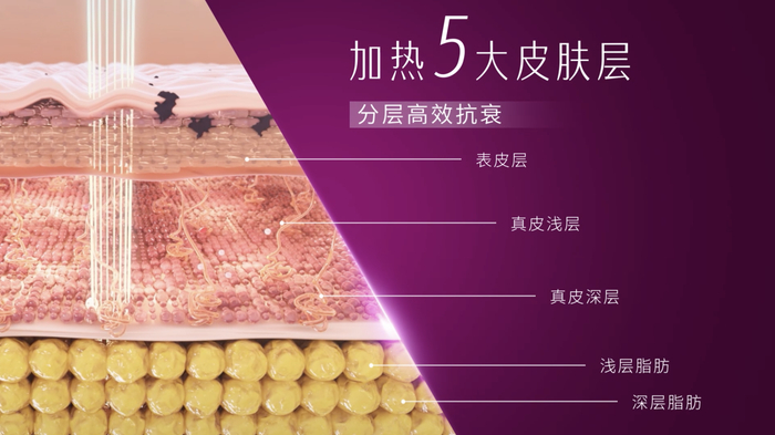 赛诺秀5D胶原光独特的300ms超长深层抗衰脉宽配合1064nm波长,能够直达皮肤深层,皮肤5大层次逐层抗衰:表皮、真皮浅层、真皮深层、浅层脂肪,深层脂肪都在它的提升范围之内。从肌底刺激胶原蛋白新生,为面部撑起胶原网,提升面部轮廓,高效急速拯救熬夜垮脸。