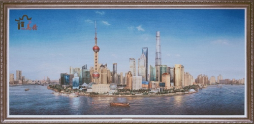 《梦想之城》可谓是绒绣走向艺术品的代表之作:画面色彩鲜明,层次丰富,立体感强,让人身临其境。通过这幅作品,我们完全能够感受到浦东蓬勃发展兴旺昌盛的景象。