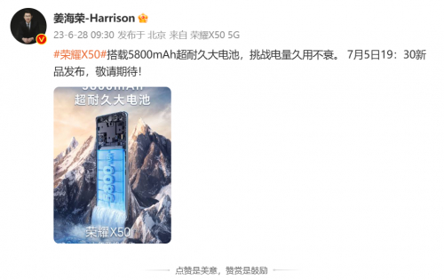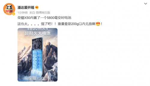 5800mAh超大电池!荣耀X50续航能力大曝光:同档位标杆的存在