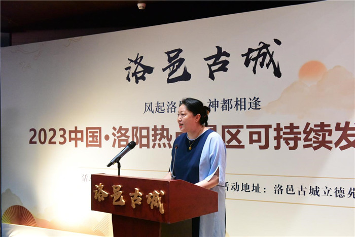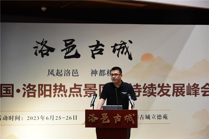 洛阳市老城区委书记、区长赵书政在致辞中向各位嘉宾的到来表示热烈欢迎,向长期以来为老城文旅发展做出贡献的各界人士表示崇高敬意。他表示,洛阳是国务院首批公布的国家历史文化名城,是华夏文明的重要发祥地,老城区是洛阳最早的建成区,也是全国唯一以“老城区”命名的行政区,历史文化资源丰富。老城区准确把握新文旅发展特征,全面实施文旅强区战略,围绕洛邑古城着力打造《风起洛阳》等汉服体验场景,以汉服热带动全域“吃、住、行、游、购、娱”消费升级,依托微信、微博、抖音等社交平台实现移动端传播广引流,全面提升服务水平推动汉服体验持续火爆,洛邑古城在全国火爆出圈,位列抖音官方平台统计的全国最受欢迎汉服打卡地榜首,抖音相关话题播放量达到13.3亿次,洛阳汉服成为全国最热的两个话题之一。希望参会专家学者提出真知灼见,深入沟通交流,进行思想碰撞。老城区将举全区之力从服饰研发、场景打造等方面持续发力,让角色扮演、剧本娱乐、沉浸式体验成为新亮点,真正将文化资源转化为文化品牌,助力洛阳建设“中国汉服文化之都”,把洛邑古城打造成为国际知名新文旅目的地。