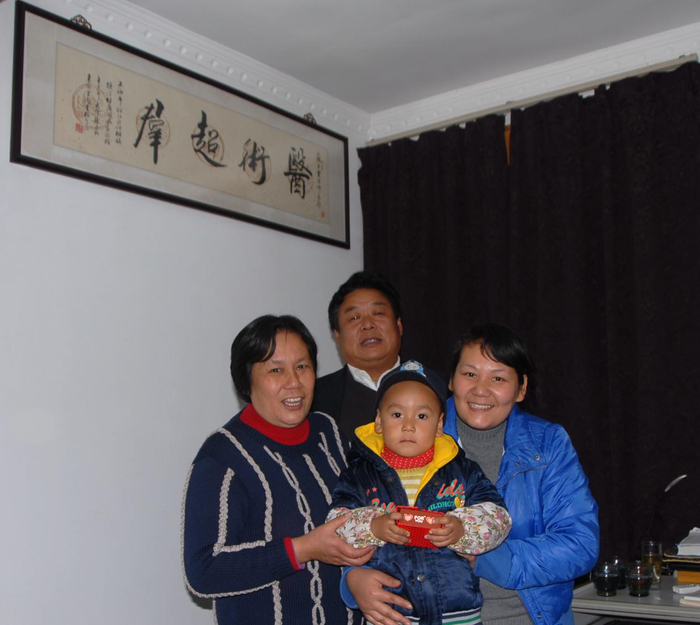 2010年,小万一家。右一是急淋已愈的女儿,后排是小万,那么泰然自得,多么幸福的一家。头顶上方是小万送来的一块匾。