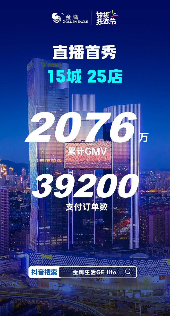 金鹰商贸是一家主力运营全生活中心与时尚百货业务的综合商场。为抓住此次大促机遇,在618前夕,金鹰商贸便深度参与「购物狂欢季」,结合平台资源,在全国15城25店全面联动探索创新营销玩法。
