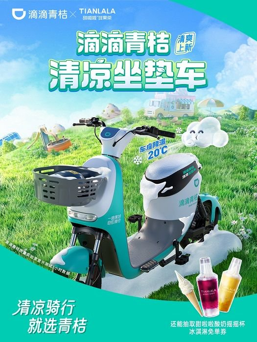 据悉本次联名是甜啦啦与滴滴青桔首次合作,以“清凉坐垫车”为载体,通过线上线下联动的方式探索夏日清凉绿色出行。滴滴青桔结合夏日户外电瓶车坐垫热的痛点,定制清凉坐垫使车座温度能够有效降低20度以上,而甜啦啦则通过提供清凉饮品的方式,让夏日出行既清凉舒适又冰爽沁心。据甜啦啦方介绍,此次活动我们为滴滴用户提供的“清凉套餐”水果摇摇杯系列,鲜果搭配酸奶冰淇淋搭配全新杯型“雪克摇摇杯”,让用户在享受新鲜美味的同时,还能沉浸在DIY的乐趣当中。