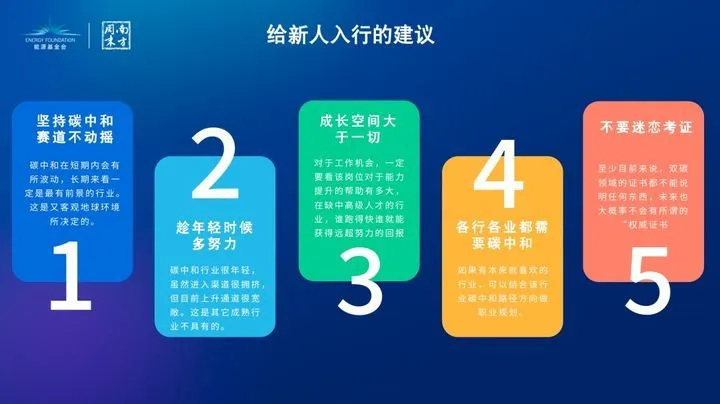 他觉得,首先要坚持碳中和赛道不动摇,气候变化客观存在,不以人的意志为转移,即便政策或舆论有波动,碳中和仍然是必须践行的,有着长远的发展前景。而年轻人投身“双碳”行业既没必要迷恋考证,也不应该死盯着狭义的“碳中和”岗位——如他们前面所讲,各行各业都需要碳中和,而具备交叉学科能力的复合人才,才是最吃香的。