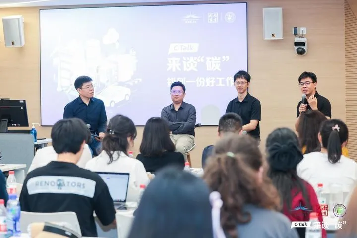 圆桌研讨环节,三位嘉宾共同探讨双碳相关领域的职业前景。