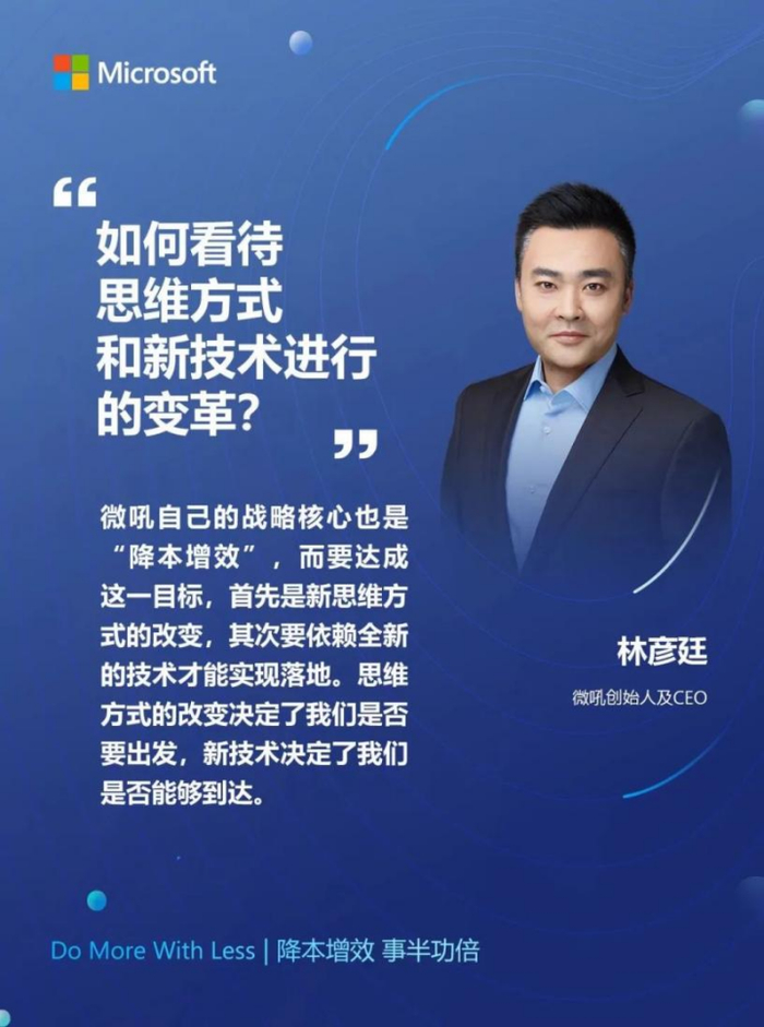 微吼创始人兼CEO林彦廷对话微软大中华区副总裁兼商业企业事业部总经理段微之,共同探讨在企业面临许多不确定性的情况下,如何加速数字化转型。