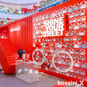 作为国家自行车队的官方战略合作伙伴,bossini.X今年7月于南京江宁万达开启为期15天的骑迹快闪活动,快闪店设计灵感来源于骑行运动,选用最具代表性的自行车及赛道元素,运用bossini.X品牌标志性火焰红贯穿其中,带来极具冲击的视觉效果,彰显品牌焕新的态度理念。空间别出心裁地采用集装箱概念,旨在探索潮流青年人的聚集地。