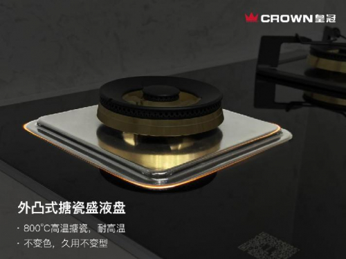 所有的皇冠灶具都采用35度角直孔出火,火盖带帽檐设计,盛液盘是高温搪瓷盘,这么做的目的是什么呢?