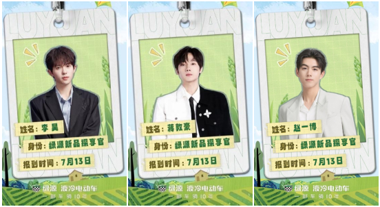 7月9日,绿源电动车正式官宣爱奇艺王牌综艺《种地吧》成员蒋敦豪、李昊和赵一博将以“绿源新品探享官”的身份走进绿源工厂,带领广大粉丝们共同探享百变美学旗舰——Moda双子星系列,揭秘天生科技绿源液冷电动车诞生的奥秘。