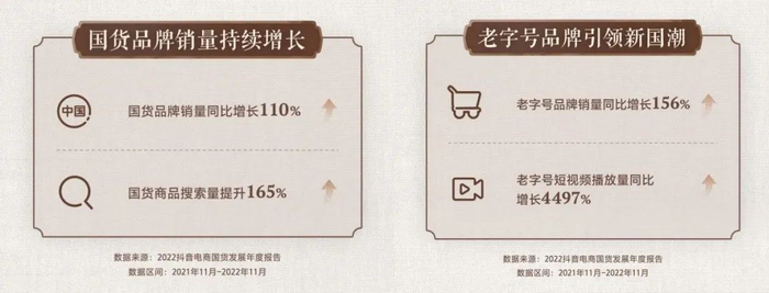 这其中,直播就成了不少老字号提升销量的有效途径。数据显示,各大平台直播的中华老字号近350家,2022年直播场次超过5万场,成交额超35亿元,较2019年增长超5倍,成为品牌消费的一大亮点。今年1月发布的《2022抖音电商国货发展年度报告》显示,抖音电商上的国货品牌销量同比增长110%,其中老字号品牌销量同比增长156%。