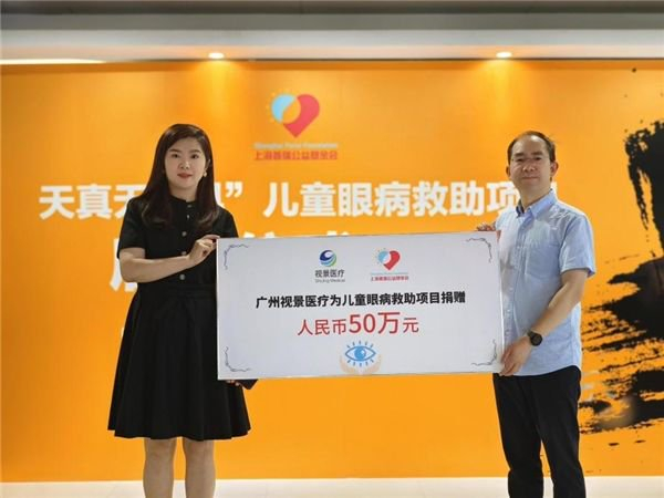 此次活动同时举办了捐赠仪式——广州视景医疗软件有限公司向天真无“斜”儿童眼病救助项目捐赠50万元。捐赠款项将全部用于救助儿童的手术费、弱视训练等项目。