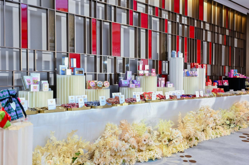 在本次发布会上,爱哆哆用美味传递心意的高端伴手礼定位布局为大家带来了一场精美绝伦的感官盛宴。爱哆哆产品负责人介绍到,本季新品“王子公主、一点心意、爱的城堡、唐彩世家”等系列礼盒,做到了里外一致的设计风格,让用户送礼更加体面。“悸动、Miss甜心”两大高端成品系列采用23年流行色及撞色设计,符合“Z世代”群体的审美选择。现场还有西式风格主题伴手礼“绝代芳华”系列及中式“订婚摆台”等产品,皆采用了更精致、更具质感工艺及设计,彰显品牌高级产品线的卓越品质,爱哆哆真正做到了喜事场景全覆盖。