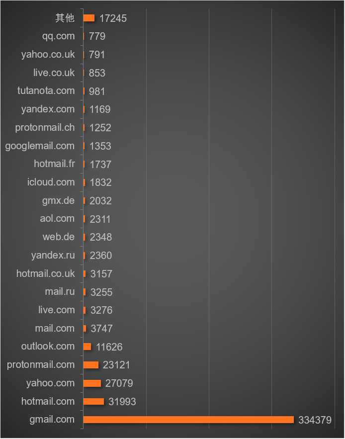 以下为Raidforums会员基于邮箱域的统计分析: