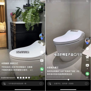 而@大嘴·王,则通过改造四合院卫生间的视频,通过实测体验,展示实际改造效果,将恒洁的智能花洒、智能马桶、浴室柜的亮点清晰的传达给用户。