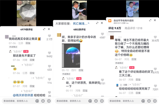随即他转变了经营思路,开始根据热门评论,推出一些被大家评为“虽然看不懂,但我大为震惊”的伞,如“遇水开花伞”“镭射反光伞”等。