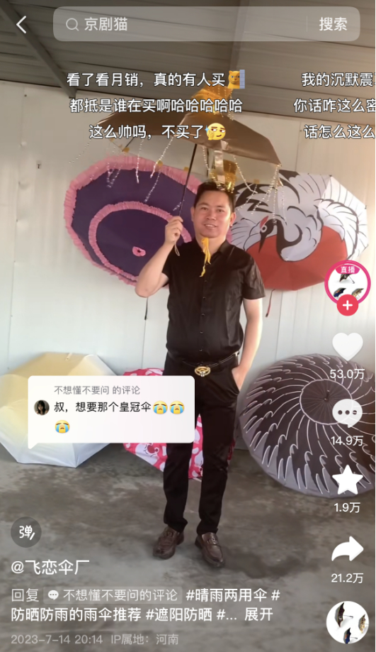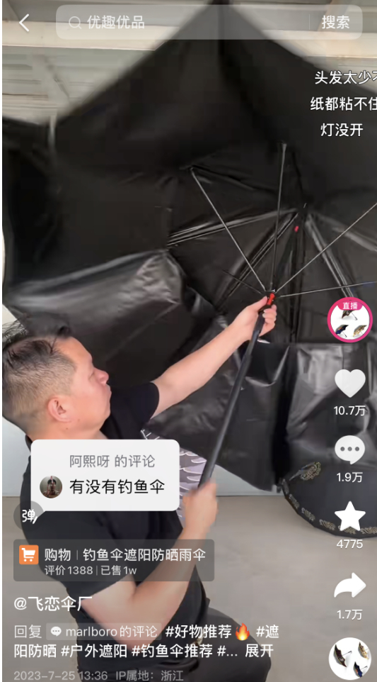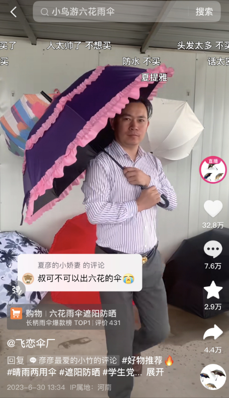 老板“花式”卖伞成工厂头号“网红”,传统厂家在抖音电商寻找转型之路