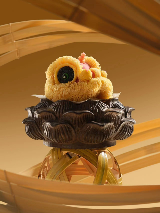 蔡澜点心师傅的双手仿佛具有神奇魔力,竟能让餐桌上惊现非遗醒狮!匠心手工制作的蔡澜醒狮酥,只有经验老到的师傅才能完美把控其出品。醒狮酥毛发栩栩如生,精细程度不输艺术雕刻品,点心师傅的手工功夫可见一斑。据店内工作人员介绍,这道菜品在制作的过程中,单手工制作就需耗费45分钟,下刀刻画160余次,才能勾勒出形状与神态,再经过72层开酥 ,炸至酥脆,醒狮的完整造型才算完成。为保证出品质量,店内每日至多只能制作10份!这不仅是蔡澜对于点心的创意追求,也是对非遗文化传承方式的丰富,让非遗文化走上餐桌,让顾客近距离领略到传统文化的奥妙。