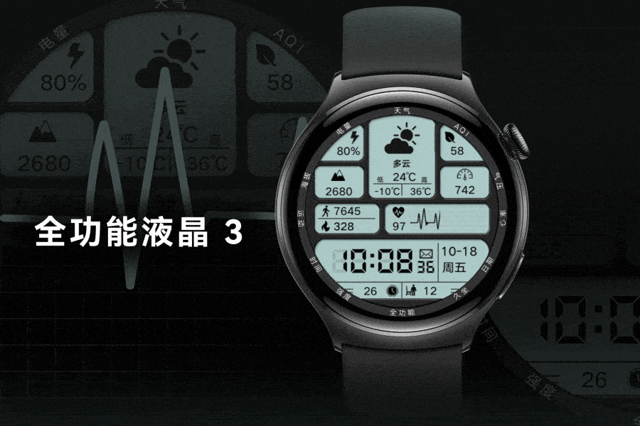 功夫不负有心人,从2019年正式申请成为华为表盘认证设计师后,不到半年时间,大憨冬瓜就设计出了第一款大受欢迎的表盘主题《全功能液晶3》,不仅创新设计了当时市场上少见的“高低温显示”功能;还设计出了“秒动心率图”,通过按秒方式模拟心率图,让表盘变得更加有趣好玩。