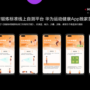 为了助力全民身体素质提升,华为与国家体育总局联合打造了“国家体育锻炼标准线上自测平台”,于今年4月在华为运动健康App正式上线。平台参照2013年颁布的《国家体育锻炼标准施行办法》,用户通过华为手机即可完成线上自测速度、耐力、力量、灵敏、柔韧五类身体素质,随时掌握自身体育锻炼效果,轻松养成更加科学、健康的生活方式。