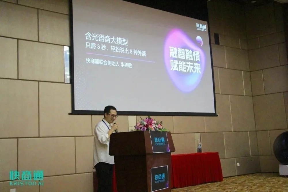 接着,快商通董事长/创始人肖龙源的数字分身为大家介绍了如何用AI为人类提供情绪价值,快商通汉朝GPT继承了快商通14年来在服务行业的消费医疗领域所积累的海量语料库和知识图谱,将专业知识和情绪价值结合,解决行业痛点,真正提供情绪价值,引领消费医疗迈入全新境界。