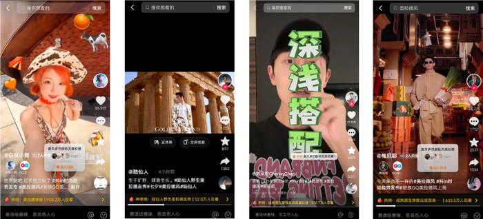 第二种氛围,是时尚商业氛围。年轻人在抖音汇聚,愿意参与时尚内容话题、喜欢时尚内容、优质时尚内容可“入心”。这是优质内容在抖音能够聚拢为时尚潮流,并构建从内容到生意全链路的根本原因。